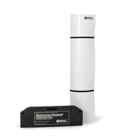 The Extreme Hockey Passing Kit Pro XL is the ultimate hockey training aid. Practice passing, stickhandling and shooting like the pros in the NHL in your own home. The 30" pro hockey passer allows you to practice passing and one-timers without training buddy. The huge 4.5'x10' roll-up hockey shooting pad simulates the feel of real ice.