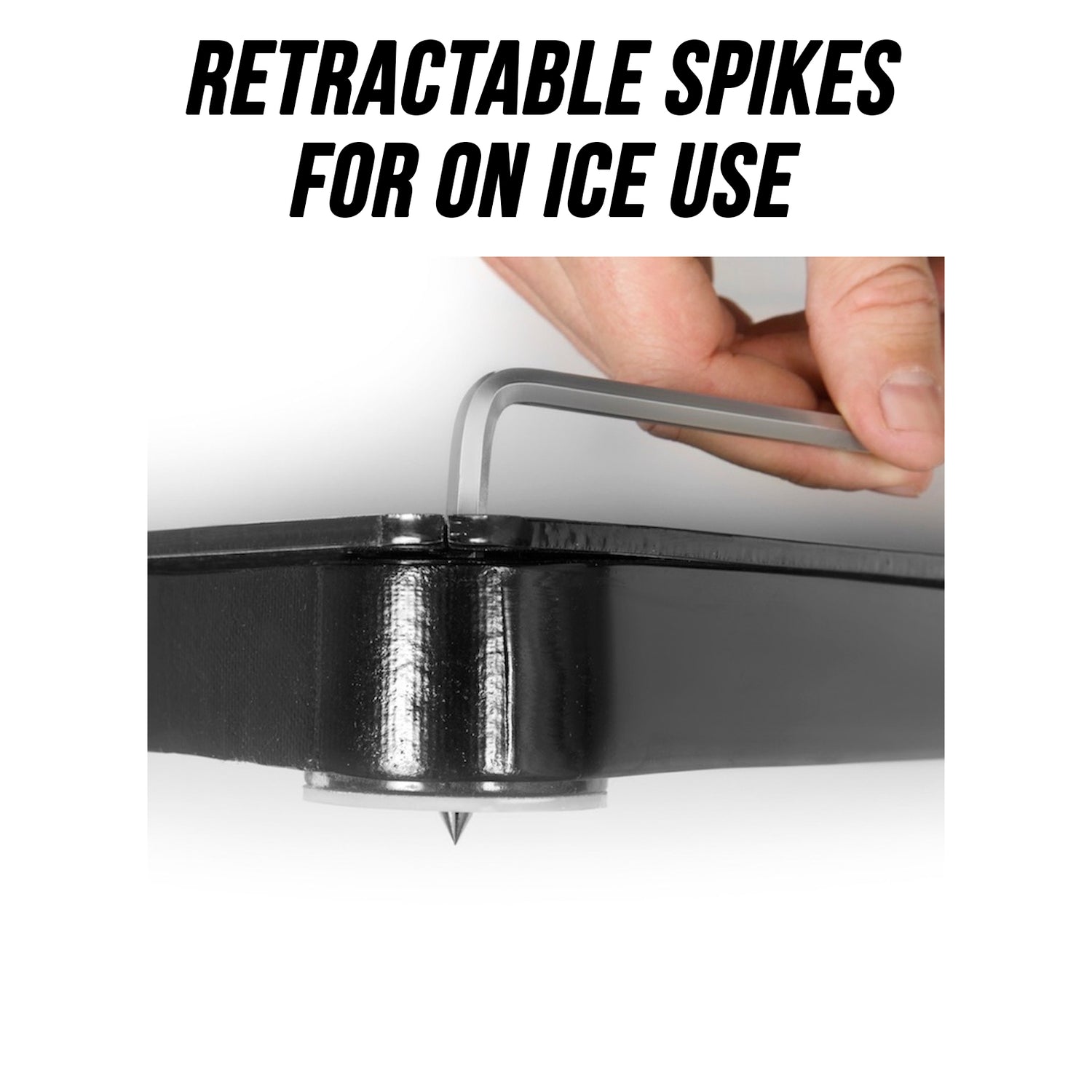 - EXTREME VERSATILITY: With rubber feet and retractable spikes, this heavy-duty steel puck rebounder can easily be used on a multitude of surfaces such as ice, concrete, asphalt, hockey tiles, and shooting pads